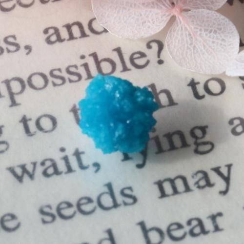 ネオン・ブルーの花のような美しく可愛い結晶です。