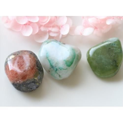 タンブル セット (ハイドログロッシュラー エメラルドインクォーツ ケセラストーン) 各約20mm