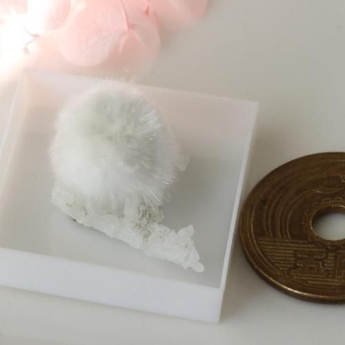 美麗 ふわふわ オケナイト オーケン石がたくさん結晶した標本 ウサギさんのしっぽ 大きめ標本 ケース付き 80mm ゆうパック便